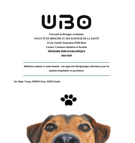 Pour ce projet ous avons exploré l’impact thérapeutique des interactions entre humains et animaux. Ce travail s’est concentré sur les bénéfices psychologiques, émotionnels et sociaux de la thérapie assistée par l’animal, notamment dans les milieux hospitaliers ou éducatifs. Nous avons aussi abordé les mécanismes relationnels qui permettent de renforcer l’alliance thérapeutique.